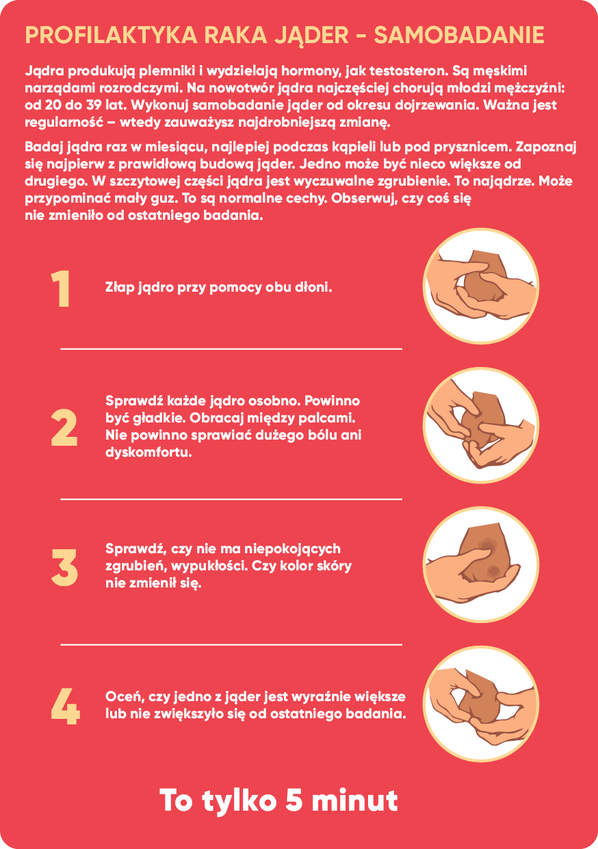 - od 15 roku życia wykonuj samobadanie jąder raz w miesiącu