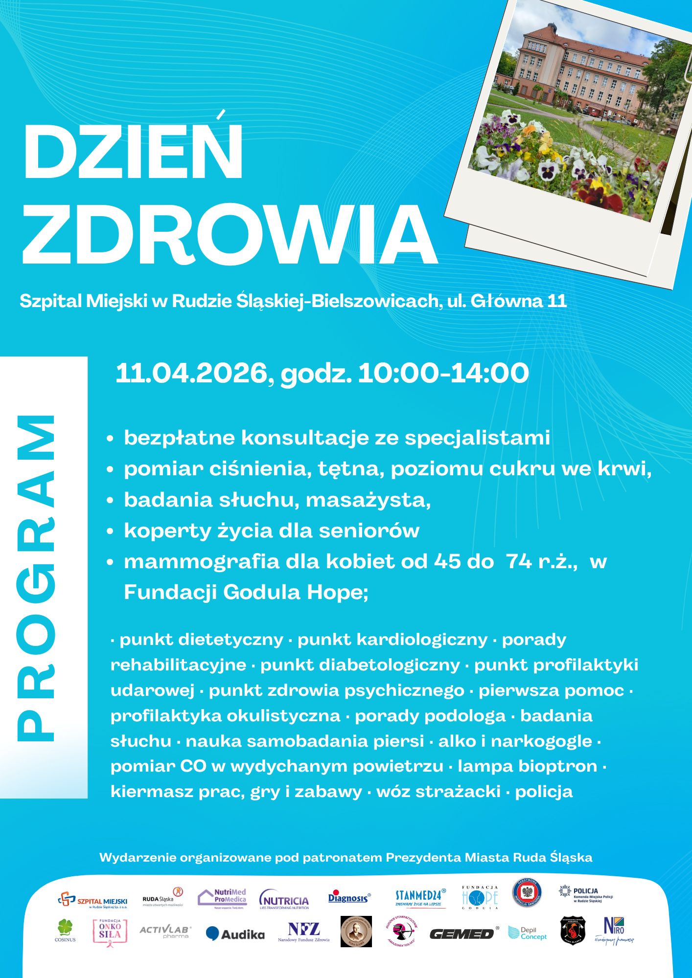 Szpital Miejski w Rudzie Śląskiej zaprasza wszystkich mieszkańców na Dzień Zdrowia – wydarzenie poświęcone profilaktyce zdrowia, bezpłatnym badaniom i konsultacjom ze specjalistami. To doskonała okazja, aby zadbać o swoje zdrowie, poznać praktyczne porady ekspertów oraz wziąć udział w edukacyjnych atrakcjach.