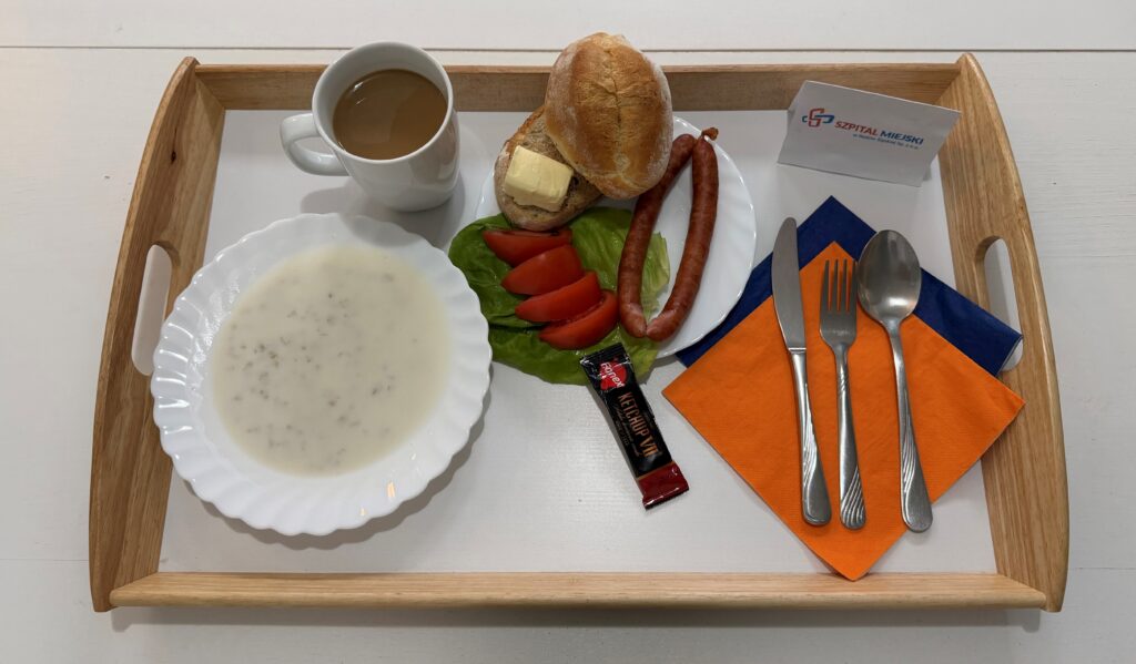 zupa mleczna z płatkami jęczmiennymi 300ml (MLE,GLU) kawa zbożowa 250ml (MLE,GLU,ŁUB) chleb zwykły 50g (GLU,ŻYT) bułka kajzerka 50g (GLU,PSZ,ŻYT) masło 82% 20g (MLE) kiełbaski frankfurtki 80g (MWP,GLU,GOR,SEL,SOJ) ketchup 17g/1szt (GOR,SEL) sałata zielona 10g pomidor 50g
